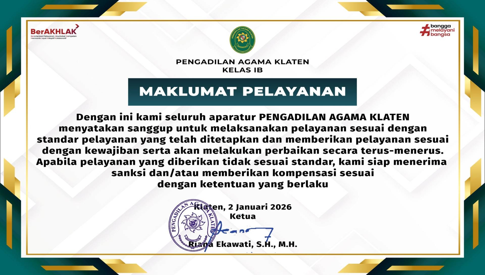 Layanan ini merupakan wujud kepedulian Pengadilan Agama Klaten terhadap pemulihan hubungan dan pencegahan konflik di masyarakat melalui pendekatan edukatif, preventif, dan solutif berdasarkan nilai-nilai syariah.