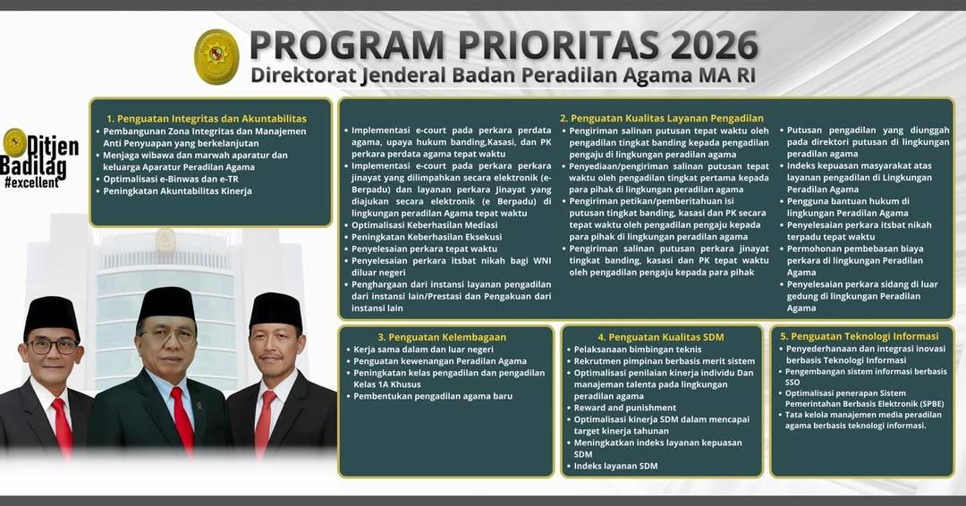 “Pimpinan Pengadilan berkomitmen penuh mewujudkan WBK dan WBBM dengan memberikan keteladanan dalam disiplin, integritas, dan transparansi. Pimpinan secara aktif terlibat dalam pengawasan, mendorong inovasi layanan, serta membangun budaya kerja anti-suap dan birokrasi yang bersih.”