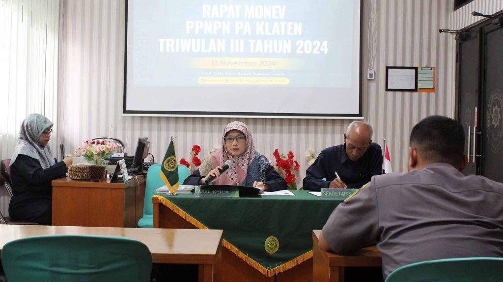 ?????????? ??? ???????? ??????? ????? ?? ?????? ???????? ??? ???? Monev Kinerja PPNPN PA Klaten Triwulan III Tahun 2024 Rabu, 13 November 2024 Pengadilan Agama Klaten menggelar Rapat Monitoring dan Evaluasi (monev) Kinerja PPNPN Triwulan III Tahun 2024 di Ruang Media Center PA Klaten. Rapat dipimpin langsung oleh Wakil Ketua PA Klaten didampingi Sekretaris serta […]