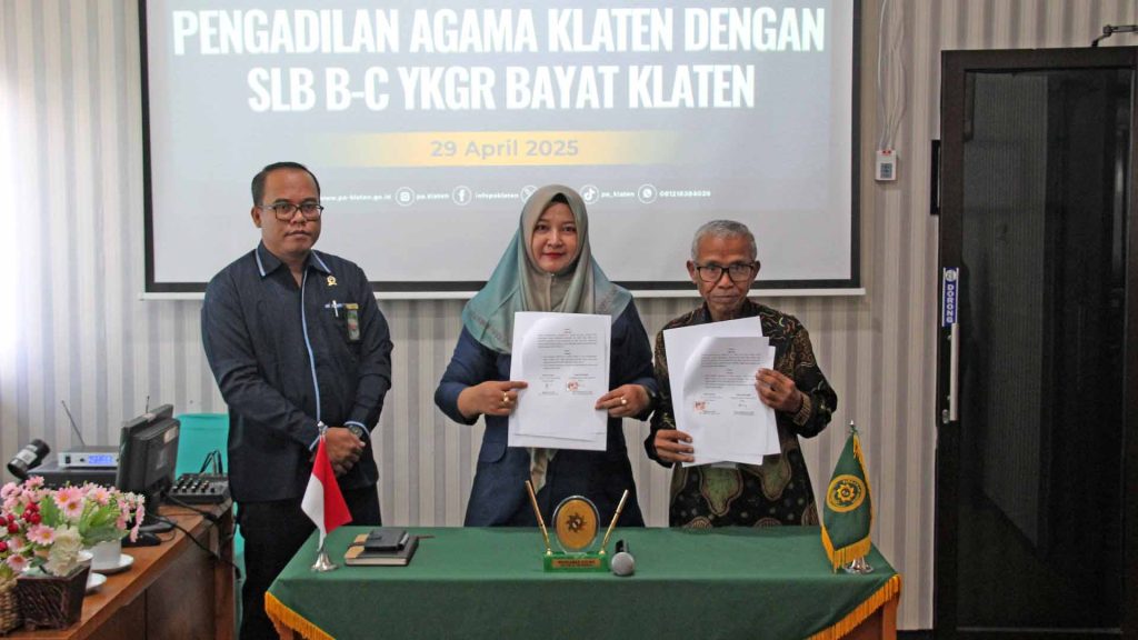 ?????????? ????????? ???? ???????? ??????, ?? ?????? ????? ????????? ?????? ??? ?-? ???? ????? ?????? Penandatanganan MoU Pengadilan Agama Klaten dengan Sekolah Luar Biasa (SLB) B-C YGKR Bayat Klaten Klaten, 29 April 2025 Pengadilan Agama Klaten menggelar Penandatangan Kerjasama / Memorandum of Understanding (MoU) dengan Sekolah Luar Biasa (SLB) B-C YGKR Bayat Klaten tentang Kerja Sama […]