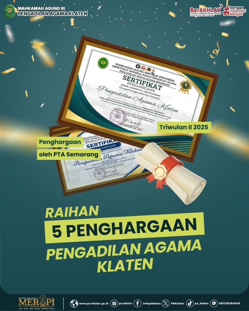 Raihan 5 Penghargaan Pengadilan Agama Klaten Periode Triwulan II Tahun 2025