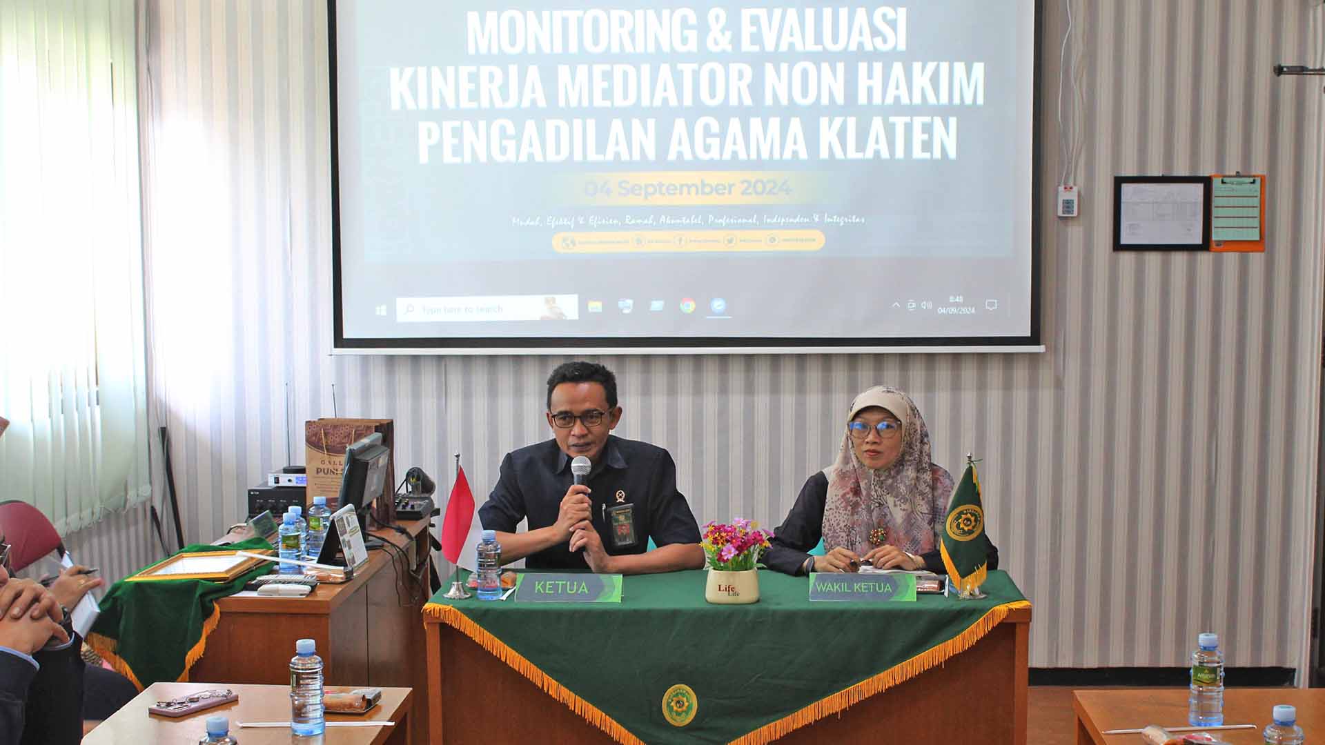 Pengadilan Agama Klaten telah melaksanakan rapat monitoring dan evaluasi mediator non hakim yang bertempat di Media Center Pengadilan Agama Klaten. Pada kesempatan ini, jajaran pimpinan Pengadilan Agama Klaten memberikan apresiasi setinggi-tingginya kepada mediator non hakim, karena hasil mediasi yang ada di Pengadilan Agama Klaten selama ini dinilai baik dan positif.