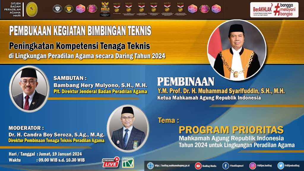 Bimbingan Teknis Lingkungan Peradilan Agama Secara Daring dengan Pembinaan oleh YM. Ketua Mahkamah Agung RI