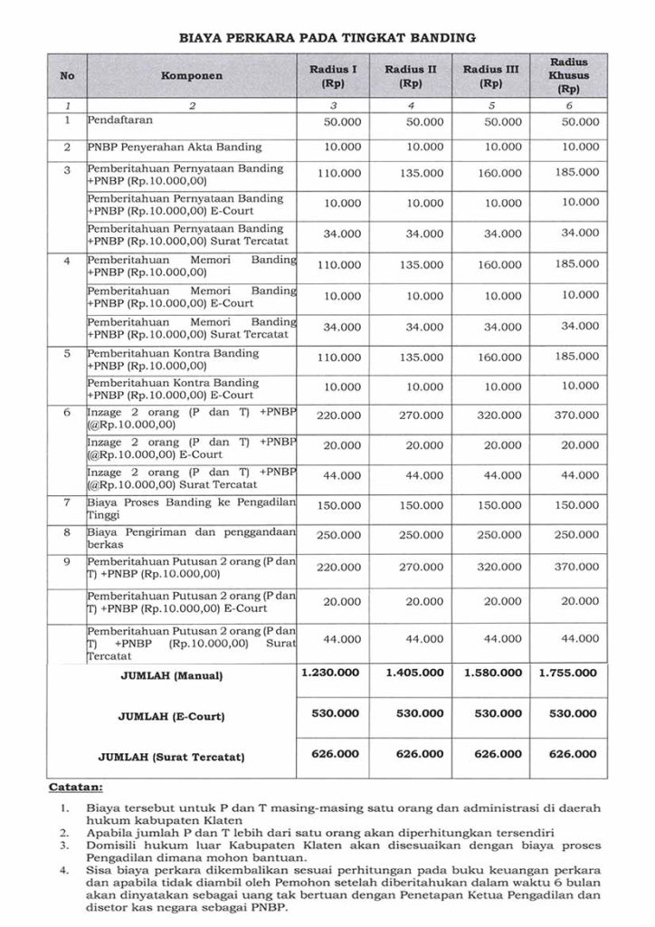 Biaya Berperkara Upaya Banding