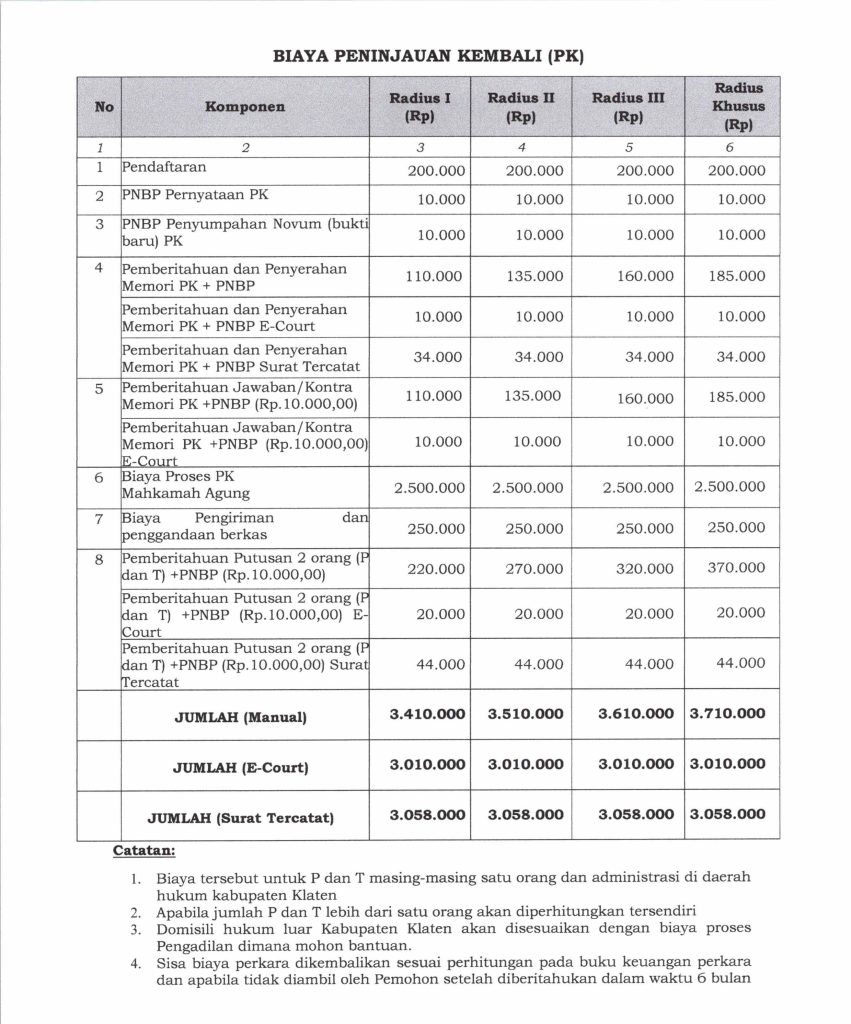 Biaya Berperkara Peninjauan Kembali