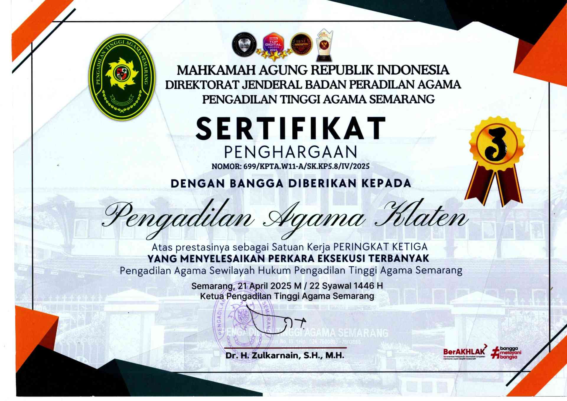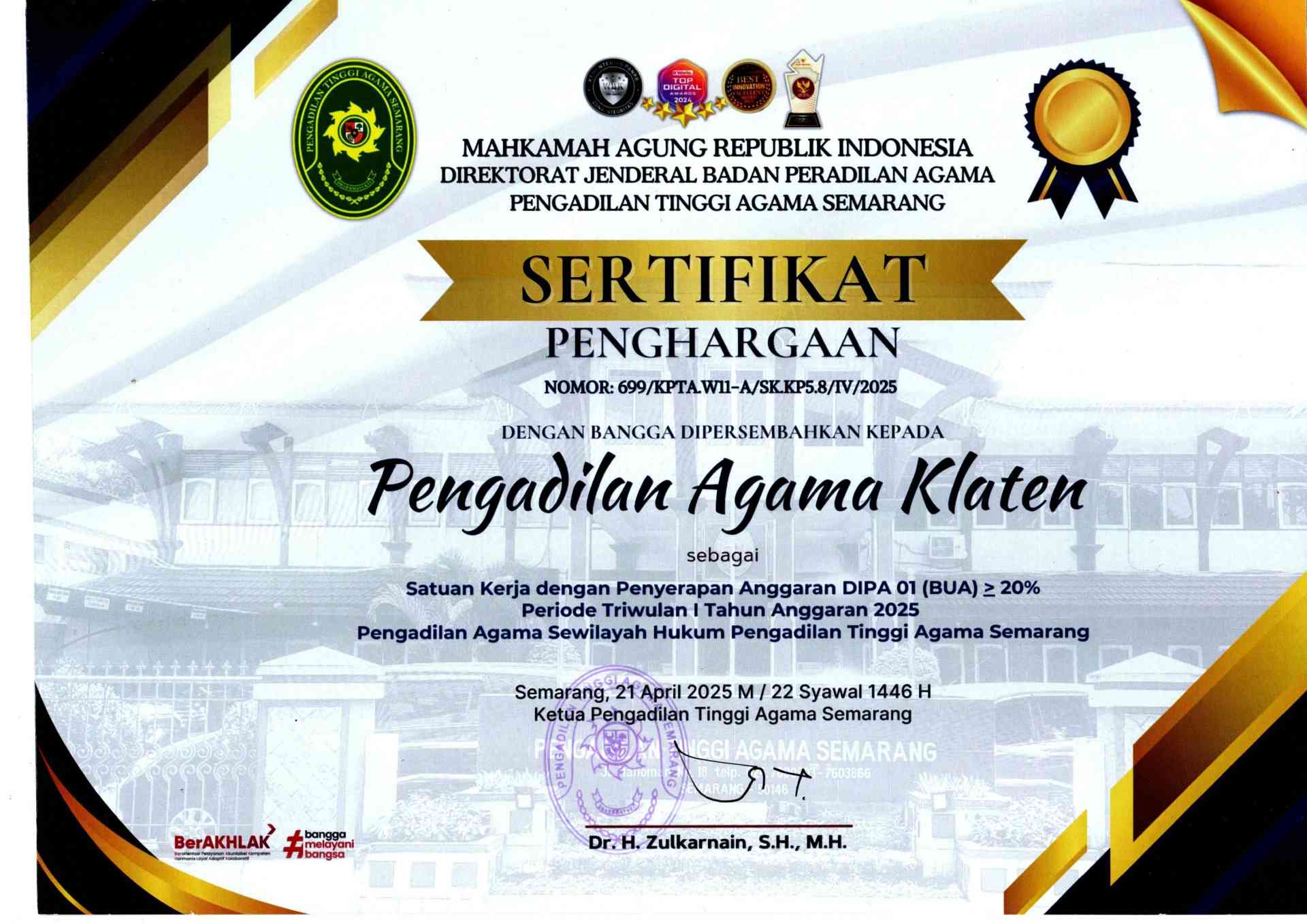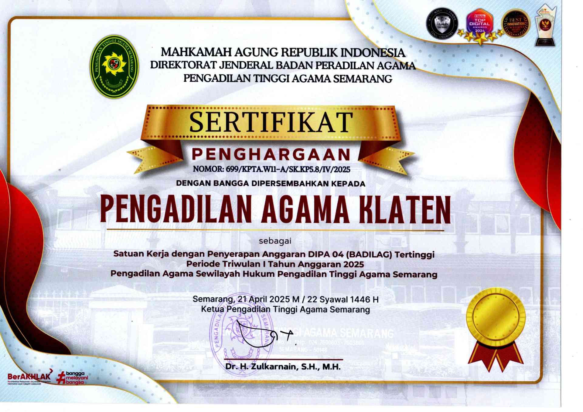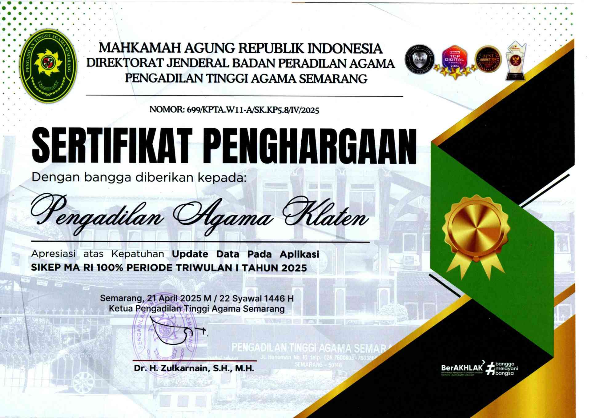 PENGHARGAAN PENGADILAN AGAMA KLATEN