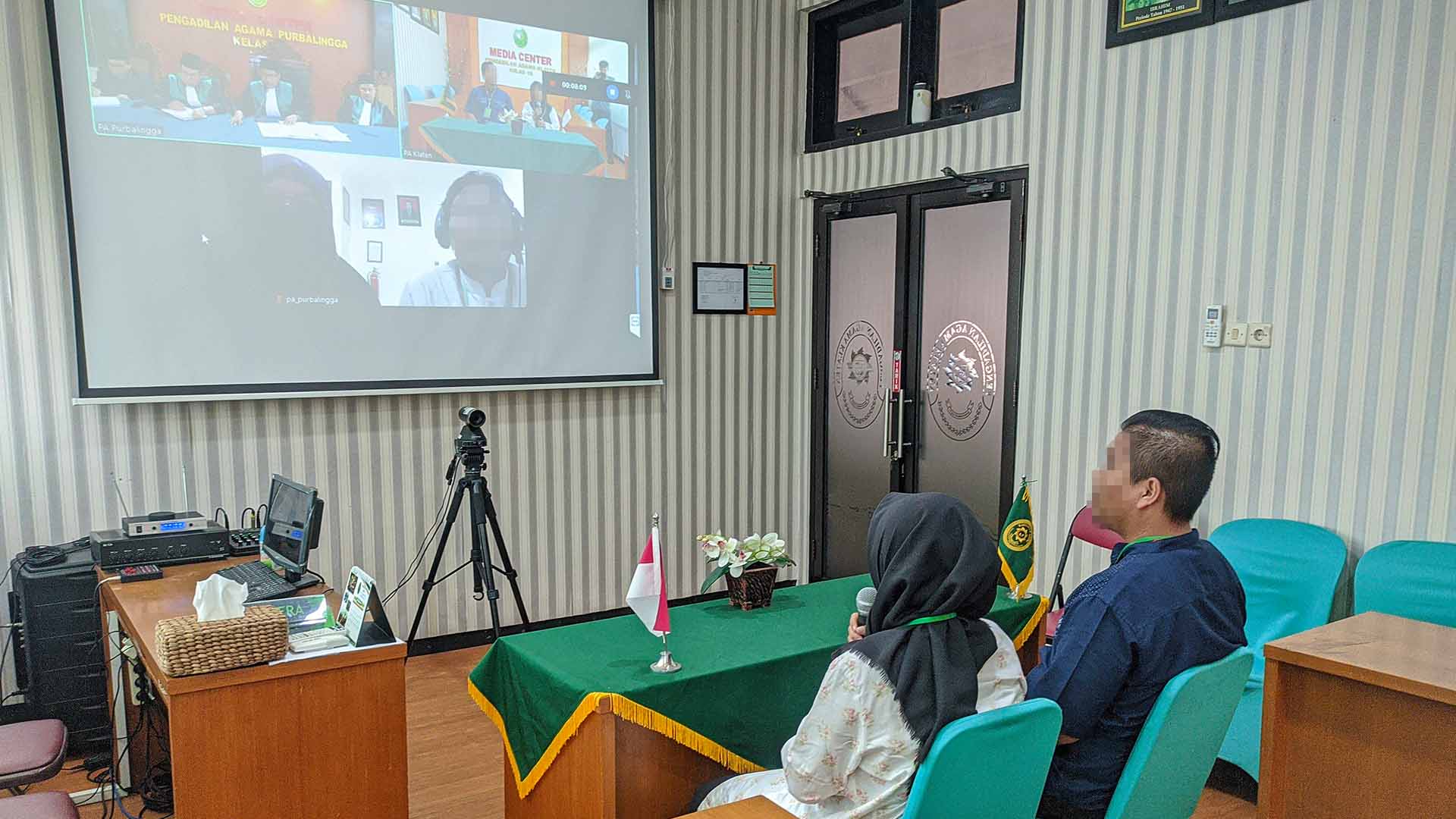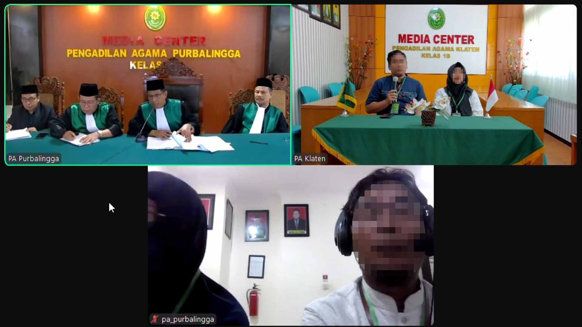Sepasang suami istri dihadirkan di Ruang Media Center PA Klaten, pasalnya Pasutri tersebut diminta keterangan dan bukti oleh Majelis Hakim Pengadilan Agama Purbalingga yang menangani perkara pengangkatan anak yang diajukan dengan nomor perkara 275/Pdt.P/2024/Pa.Pbg. Perkara pengangkatan anak ini mengangkat anak kandung dari pasangan suami istri yang berdomisili di Kecamatan Cawas Kabupaten Klaten, maka dari itu PA Purbalingga meminta bantuan PA Klaten untuk menghadirkan orang tua kandung dengan metode sidang teleconfrence.