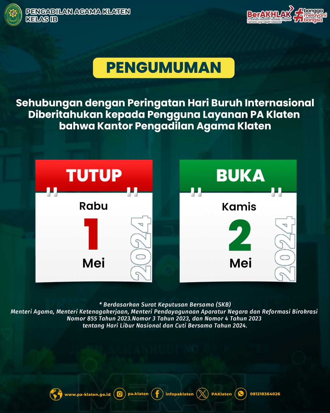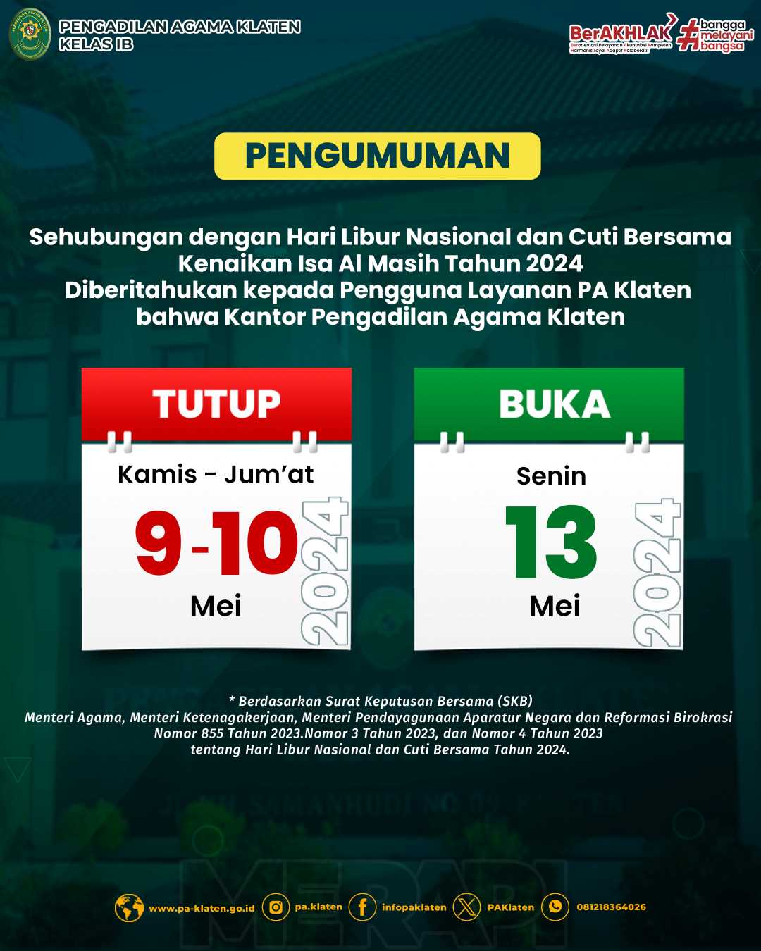 Pelayanan Tutup PA Klaten Dalam Rangka Kenaikan Isa Al Masih