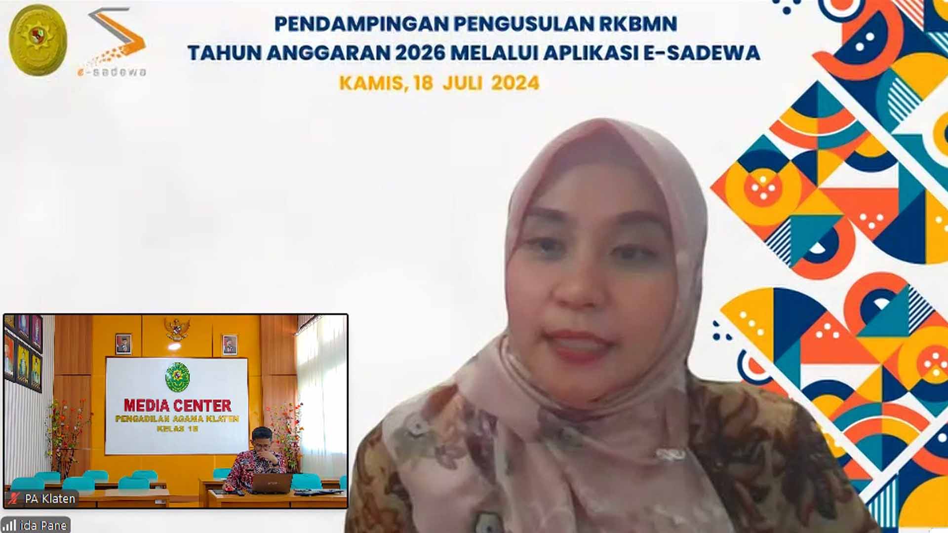Pengadilan Agama Klaten mengikuti kegiatan Pendampingan Pengusulan Rencana Kebutuhan Barang Milik negara (RKBMN) Tahun Anggaran 2026 melalui Aplikasi E-Sadewa secara daring. Kegiatan ini digelar oleh Biro Perlengkapan Mahkamah Agung RI secara daring untuk meningkatkan pemahaman dan keterampilan pengusulan RKBMN satuan kerja di lingkungan Mahkamah Agung RI agar lebih efisien dan tepat sasaran.