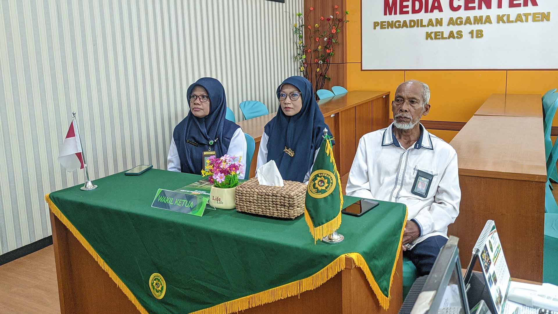 Selain itu Wakil Ketua, Panitera dan Sekretaris Pengadilan Agama Klaten mengikuti kegiatan tersebut secara virtual melalui Zoom Meeting di Media Center Pengadilan Agama Klaten.