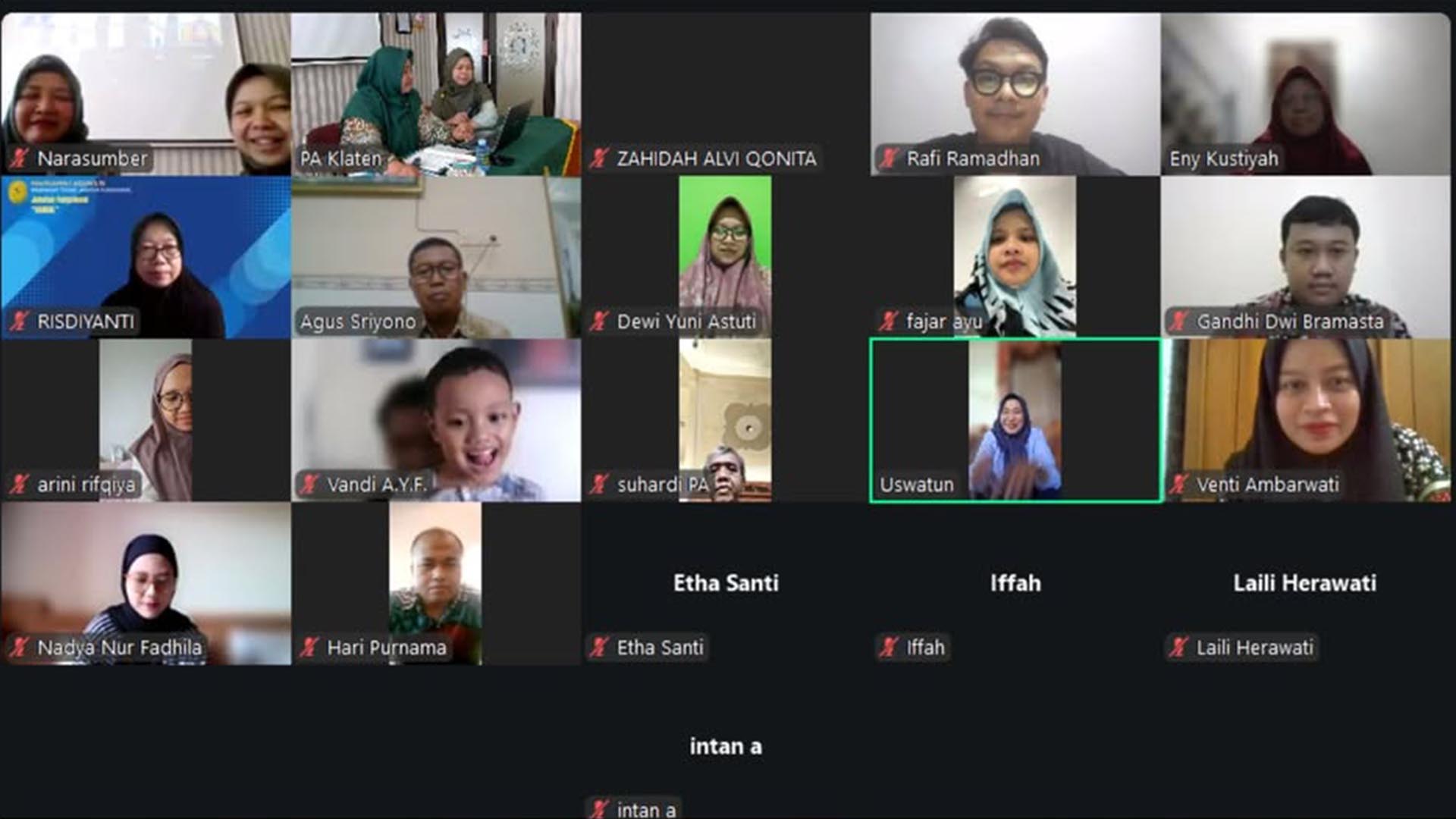Seluruh Aparatur Pengadilan Agama Klaten Ikuti Sosialisasi Budaya Kerja, SPIP, SMAP dan Pohon Kinerja Baik Secara Luring maupun Daring