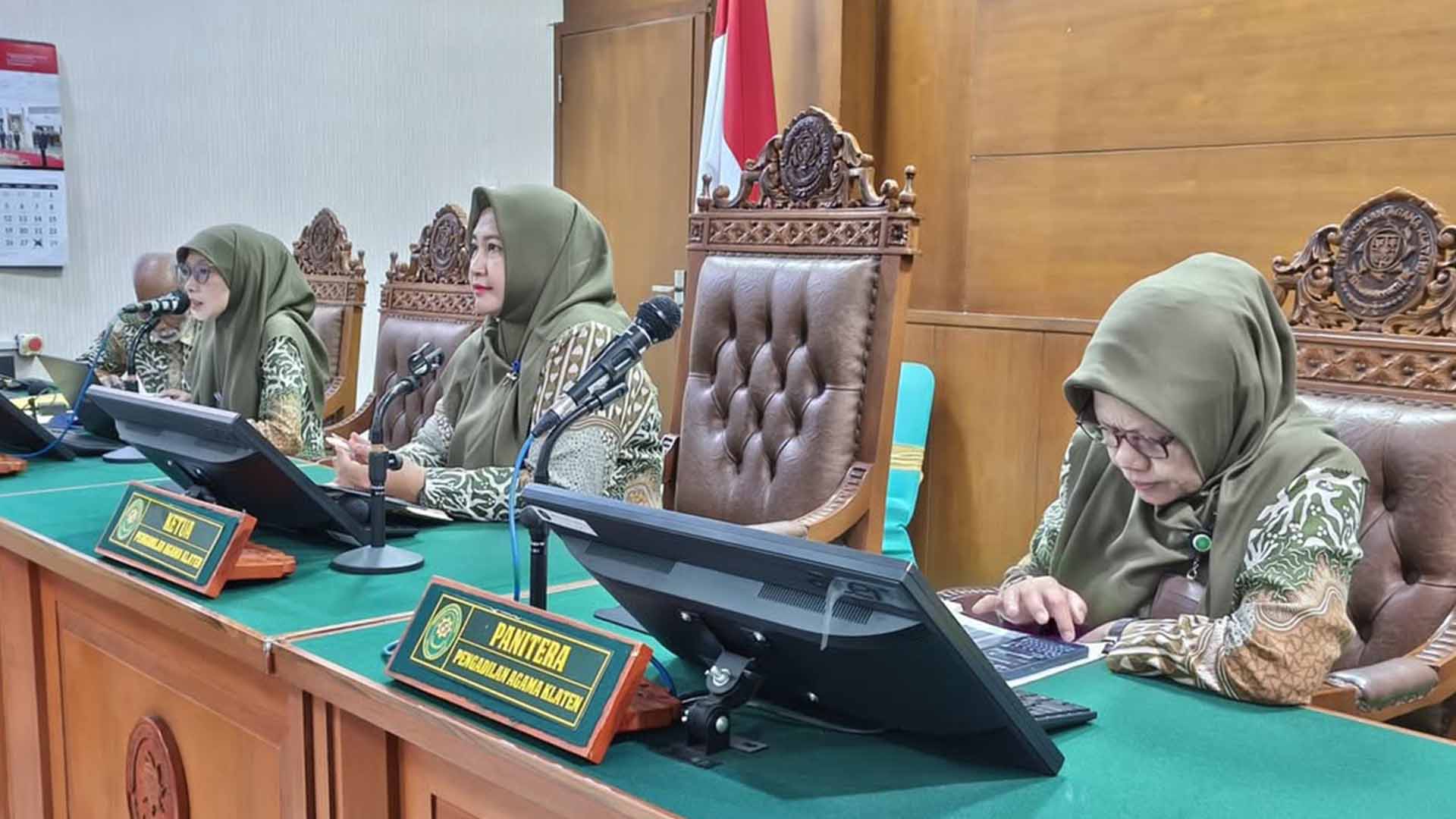 Ikhtiar pertahankan kualitas kerja selalu baik, aparatur Pengadilan Agama Klaten gelar rapat koordinasi monitoring dan evaluasi kinerja. Rapat ini berlangsung di Ruang Sidang Utama Pengadilan Agama Klaten, dan dipimpin oleh Ketua Pengadilan Agama Klaten, Ibu Riana Ekawati, S.H., M.H.. Kegiatan rapat dimulai dengan arahan oleh Ketua dan Wakil Ketua, dilanjutkan dengan laporan kerja setiap divisi, baik dari kesekretariatan yang diwakili oleh Sekretaris, Kasub. Umum, Kasub Kepegawaian, dan Kasub IT maupun Kepaniteraan yang diwakili oleh Panitera, Panmud Hukum, Panmud Gugatan dan Panmud Permohonan. Rapat ini dinilai sangat bermanfaat oleh Ibu Ketua, karena bisa menjadi kontrol kinerja secara transparan, dengan harapan seluruh aparatur bisa bahu membahu mempertahankan maupun meningkatkan kualitas kinerja.