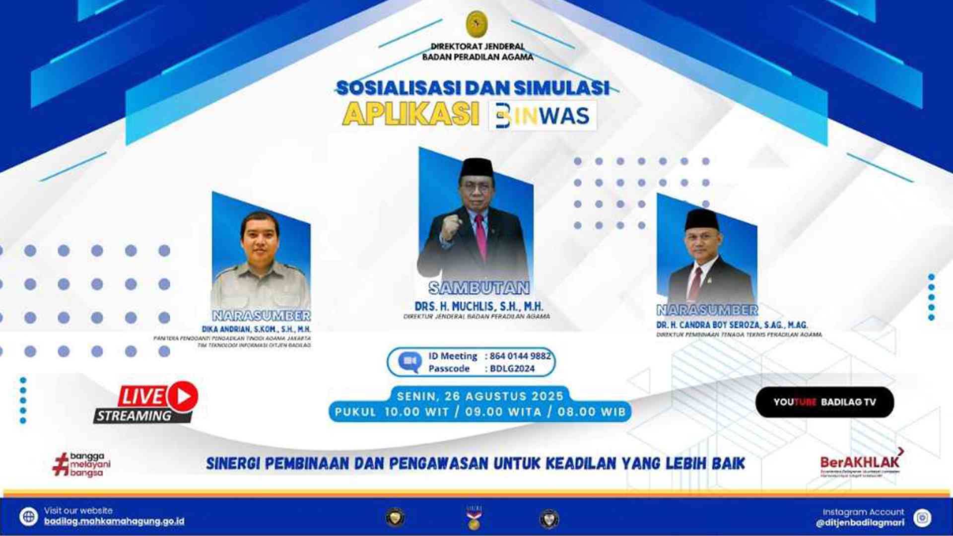 Sosialisasi dan Simulasi Aplikasi E-BINWAS Dirjen Badilag MA-RI oleh Dr. H. Candra Boy Seroza, S.Ag., M.Ag.(Direktur Pembinaan Tenaga Teknis Peradilan AgamaI)
