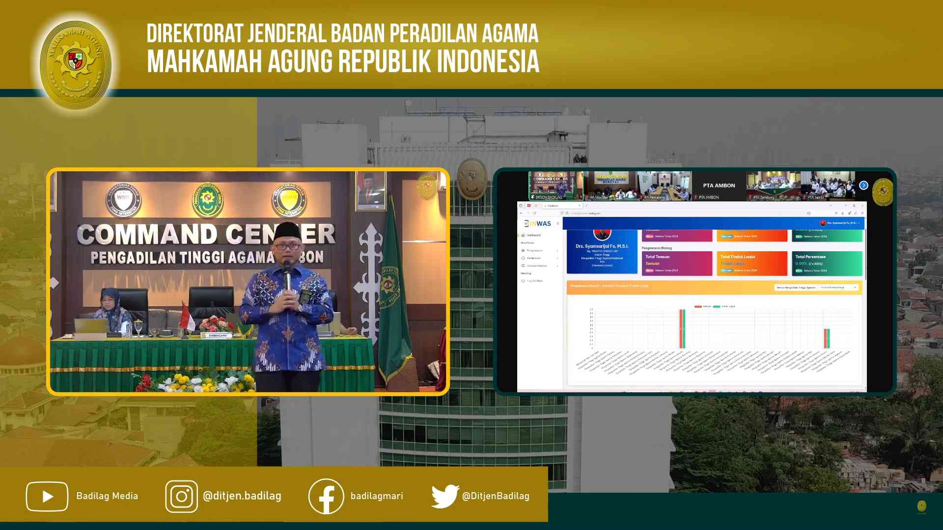 Acara kemudian dilanjutkan dengan Sosialisasi Sistem Pembinaan dan Pengawasan Secara Elektronik Terintegrasi (E-Binwas) oleh Dr. H. Chandra Boy Serza, S.Ag.,M.Ag (Direktur Pembinaan Tenaga Teknis Peradilan Agama).