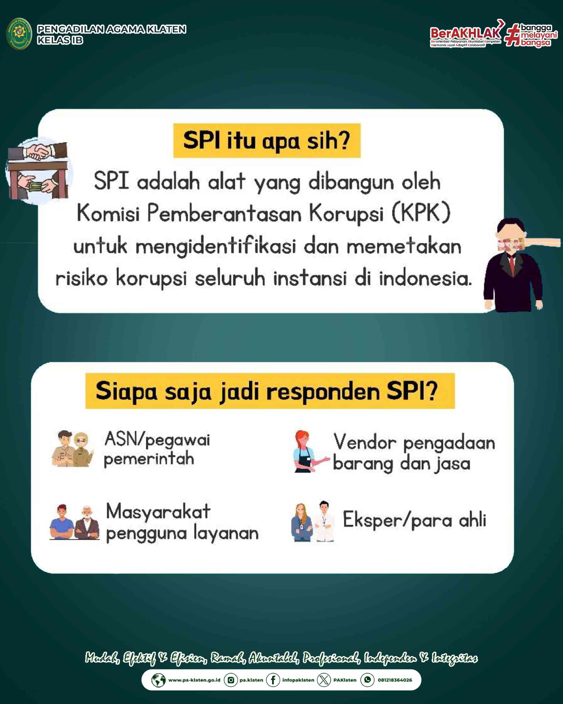 Pengadilan Agama Klaten terus berkomitmen dalam memberantas dan mencegah tindakan praktik korupsi, kolusi serta nepotisme.