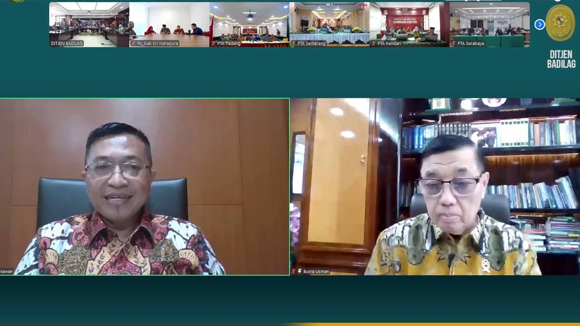 Bimbingan Teknis Lingkunagn Peradilan Agama secara daring dengan Narasumber YM. Hakim Agung Drs. H. Busra Usman, S.H., M.H