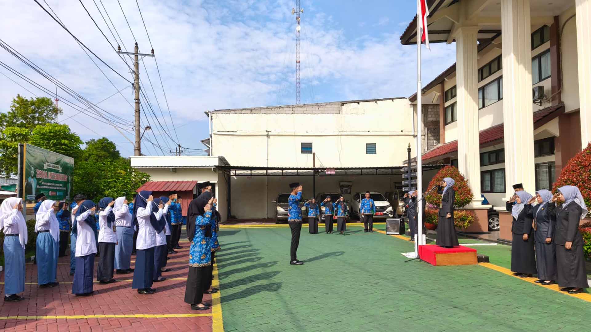 Jajaran aparatur Pengadilan Agama Klaten menggelar Upacara Peringatan HUT Korpri ke-54 di Halaman Kantor Pengadilan Agama Klaten, Wakil Ketua PA Klaten, Ibu Ummu Hafizhah, S.H.I., S.E., M.A. pada kesempatan ini bertugas sebagai Inspektur Upacara Peringatan HUT Korpri ke-54 yang megusung tema nasional “Bersatu, Berdaulat, Bersama Korpri Mewujudkan Indonesia Maju”.Tema ini mencerminkan tekad Aparatur Sipil Negara (ASN) untuk tetap menjaga persatuan, solid, berintegritas, dan mandiri dalam pengabdian, menjadi kekuatan moral dan profesional, menjadikan KORPRI sebagai kekuatan pemersatu dan penggerak birokrasi demi terwujudnya Indonesia yang maju, adil, berdaya saing, dan berkeadilan, dengan semangat memperkuat solidaritas dan persatuan di antara anggota KORPRI.