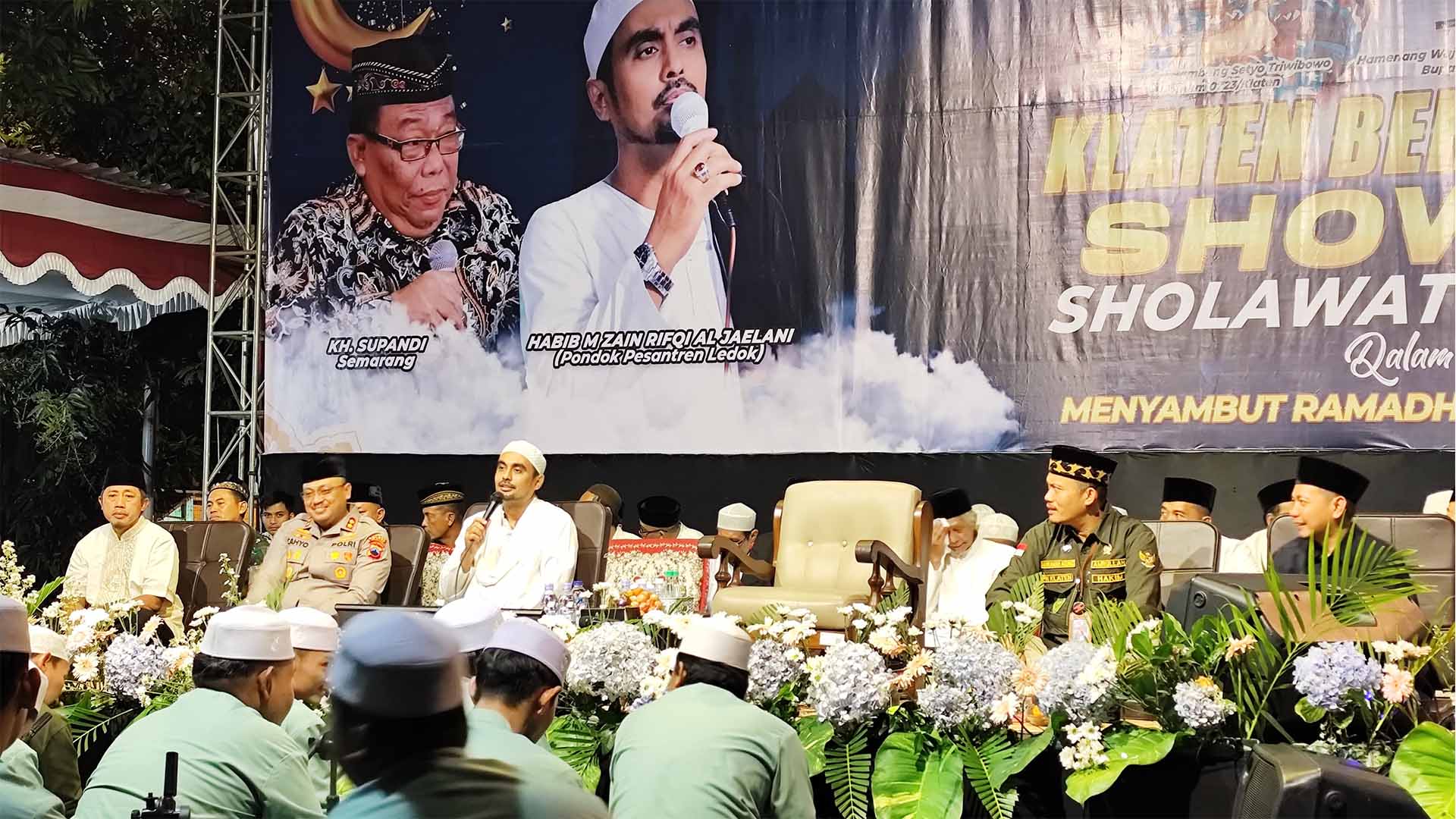 Dalam rangka menyambut bulan suci Ramadan 1446 H/2025 M, Polres Klaten menggelar acara Klaten Showanji (Sholawat dan Ngaji) yang digelar di Halaman Polres Klaten. Acara ini dihadiri oleh berbagai elemen masyarakat, termasuk Pengadilan Agama Klaten yang diwakili oleh Panitera Muda Hukum, Bapak Sukarna, S.H.I., M.H. Acara Showanji ini menghadirkan Habib M. Zain Rifqi Al Jaelani dan KH. Supadi sebagai penceramah utama. Selain itu, Showanji juga dihadiri oleh jajaran Forum Koordinasi Pimpinan Daerah (Forkopimda) Klaten, tokoh masyarakat dan dihadiri oleh ribuan warga Klaten.